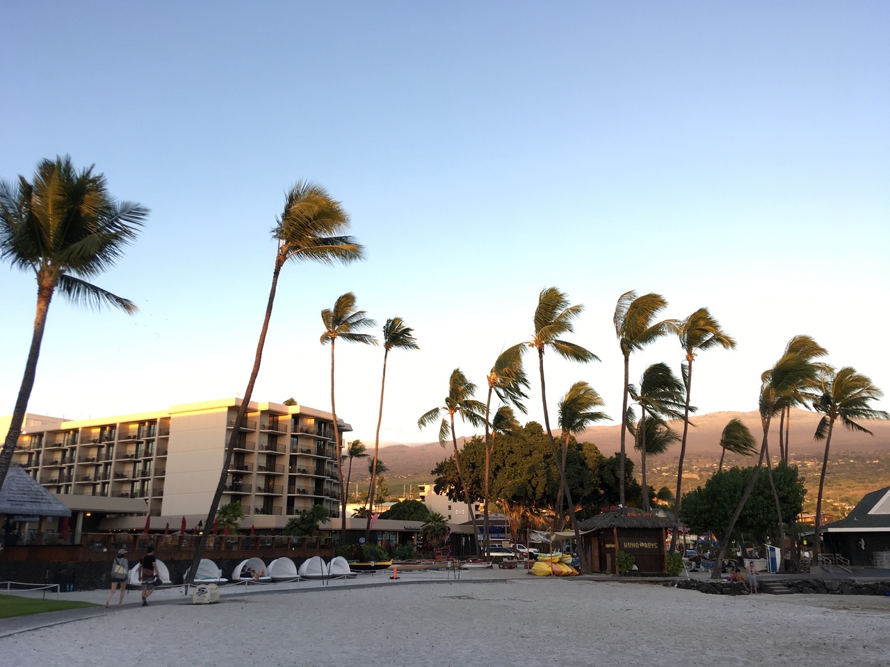 カイルアコナの街を散策できる立地で選びました。ホテル前にも飲食店あり、レンタカーに頼らずに気兼ねなく飲める。コナブリューイングもスーパーも歩いて行けます。ビーチは狭いけどシュノーケルでお魚もチラホラみれる。ホテル自体はちょっと古い。