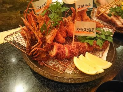 頼んだのは、「海老三昧」と「とんかつ三昧です。お店によるとそれぞれ、2名から4名で・・・!とありましたが、3人で完食でした。