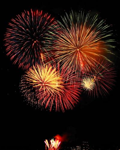 台船一隻ですので、打ち上げ場所は1ヶ所に近いので、何ヵ所から打ちあがるものに比べれば少し単調になりがちですが、高低差で楽しませてもらえます。