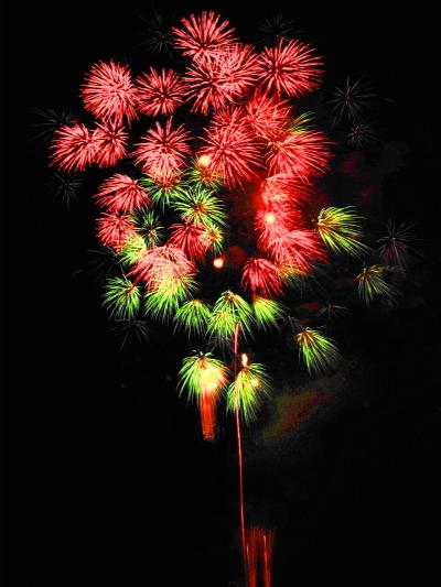 海水浴場の沖に準備された台船から打ち上げられます。