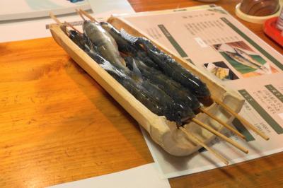 塩焼の鮎は、串に刺されていますがピクピクと動いています。