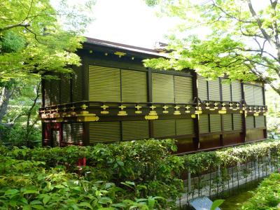 木部は内外とも全てを春慶塗と黒漆塗に塗分け、長押や垂木の先には金箔を施した飾り金具を打つなど非常に華麗で繊細な造りとなっています。