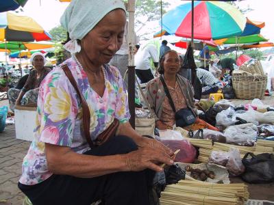 市場でお買い物。フルーツもつかみ取り50円。おなかいっぱい食べても食べ...