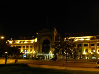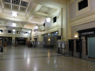 • メイン駅近くのバスターミナルの中。もう夜22時を超えているせいか、ガラ...