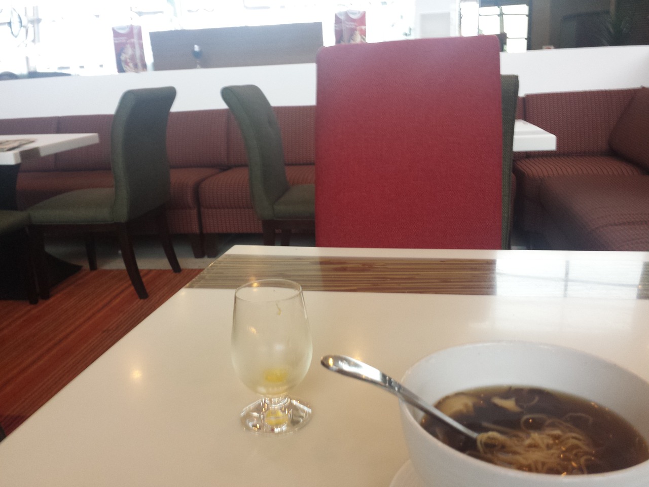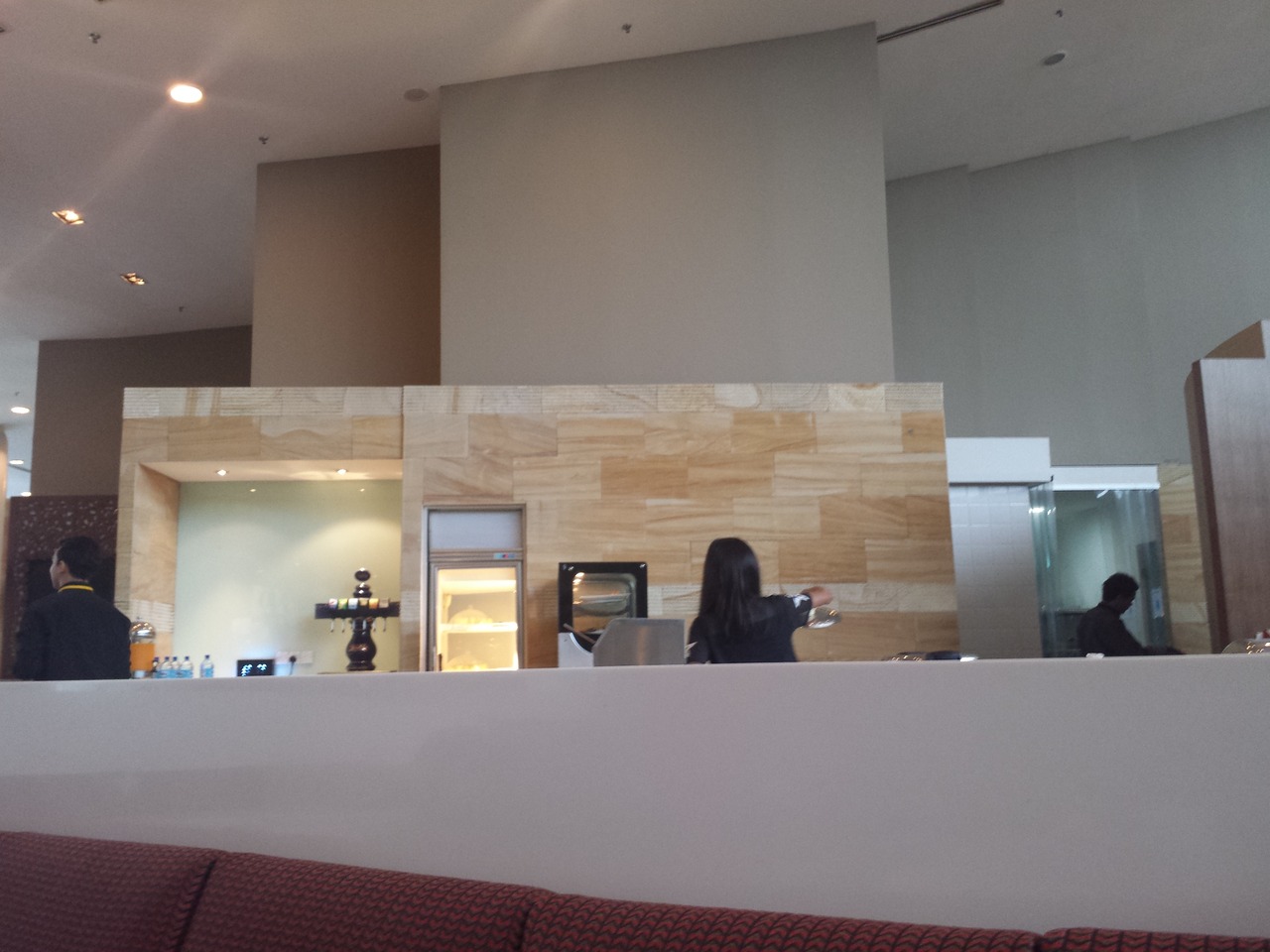 MHのラウンジに初めて入りました。天井が高いのと空いてる時間なので広々した感じ。食べものもまあまあ、ただしお酒はありません。ジャカルタからの往復にビジネスクラス利用しましたがやっぱりお酒はでません。エジプト航空とかトルコ航空はラウンジも機内もお酒用意してるのに。