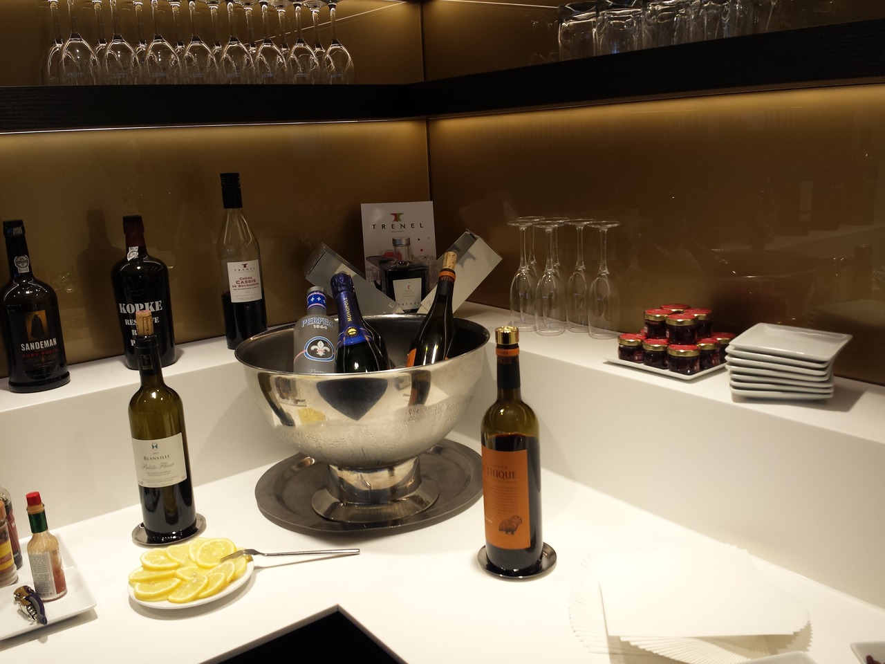 ラウンジ受付ですぐのところがファーストクラスラウンジ、親子2人で入りましたが他に誰もいない貸切状態!料理も飲み物も他の欧米系の航空会社ラウンジに比べると随分充実しています。スモーキングがないのでビジネスラウンジにも入りましたが他のLAXとかEZEよりもスペースは狭いけど内容は優れています。