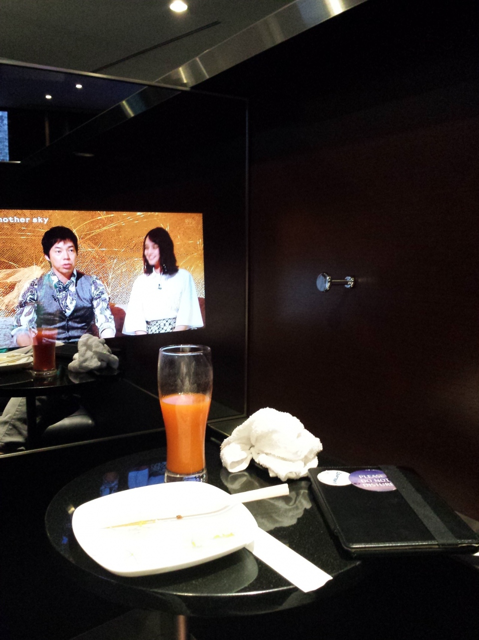 あとは個人用のブースで体伸ばしてのんびり。シンガポールのSQラウンジも麺とか作ってくれますがこんな個人用ブースはありません。