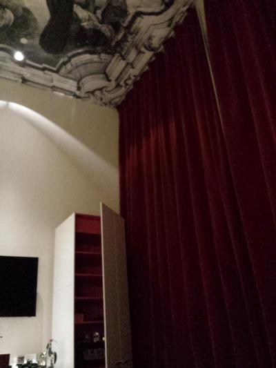 シヤンゼリゼ通りから1本入った静かなホテルです。元貴族の家を改造した建物で綺麗に改装されてるのですが部屋が凄く狭くてエキストラベッドも入らないくらい。でも天井が高い!4メートルくらいあるかな。天井には何やら不気味な絵が描かれてます。部屋に比べて結構広いベランダ付きの部屋にしてくれました。ここでタバコが吸えるからgood!