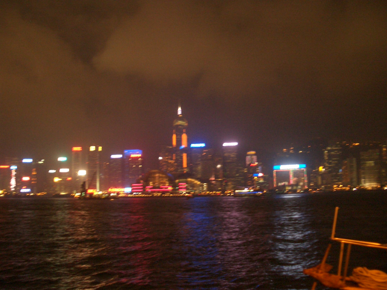 その時は、霧雨と黄砂の影響なのか、香港島側がかなりかすんでいて、