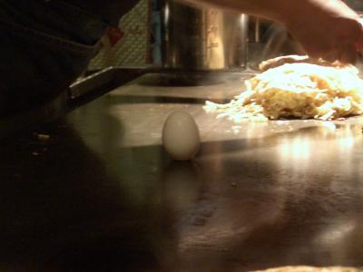 途中で、たまごを『コトン』と鉄板に立たせるパフォーマンスも良かったです。