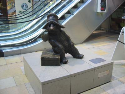 2日帰国日の夕方荷物を転がして電車に向かう途中でパディントンベアに会い...