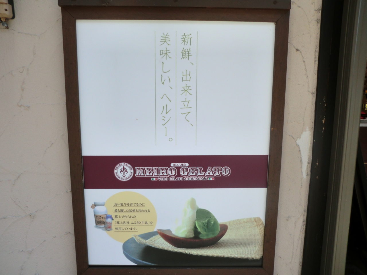 郡上に行ったら明宝ジェラートをお勧めします。地元の牛乳を使ったミルクとピスタチオを注文しました。とてもなめらかでしつこくないけど、コクがあり食べやすかったです。この日は暑かったので観光客で溢れかえっていました。
