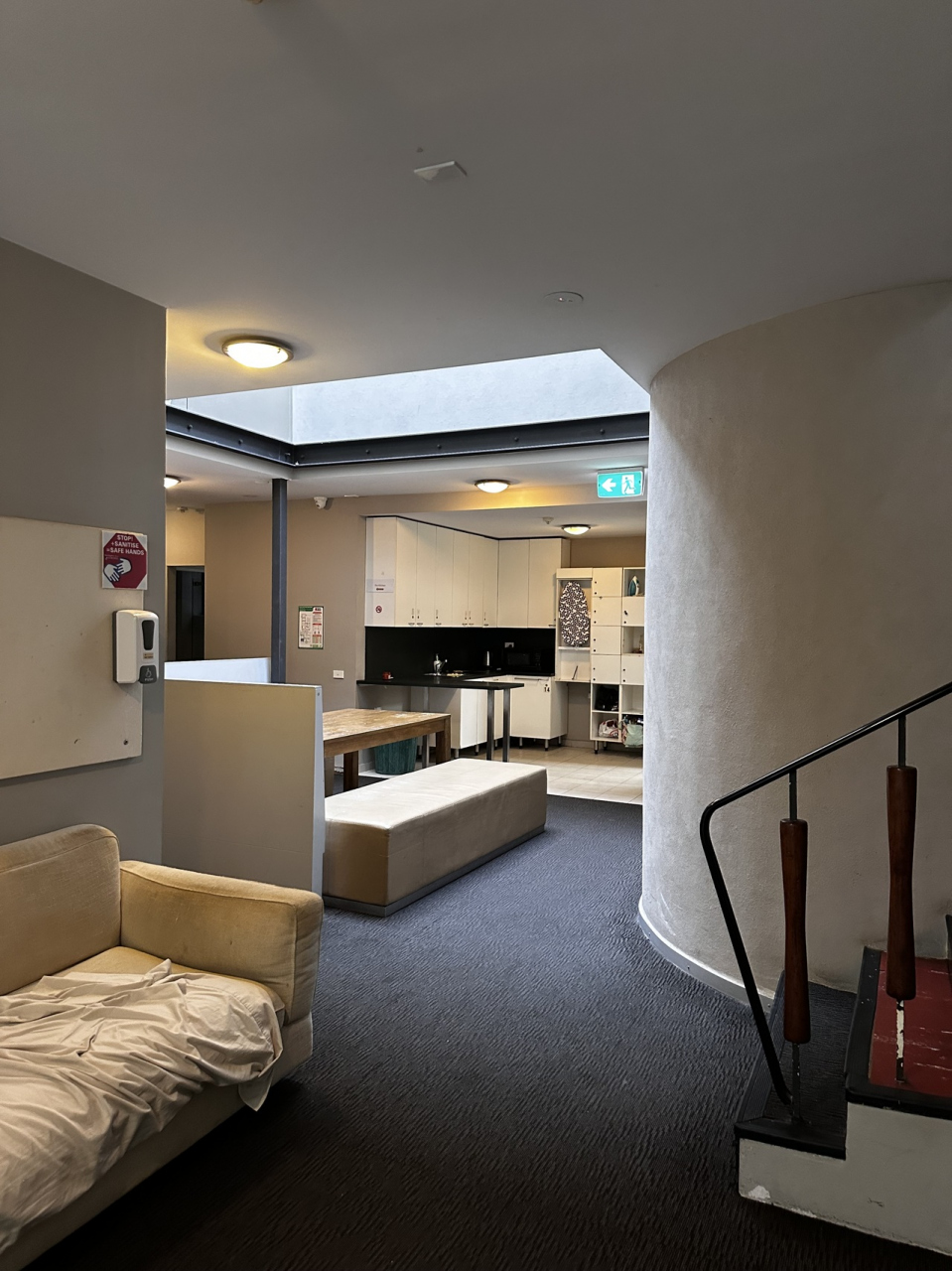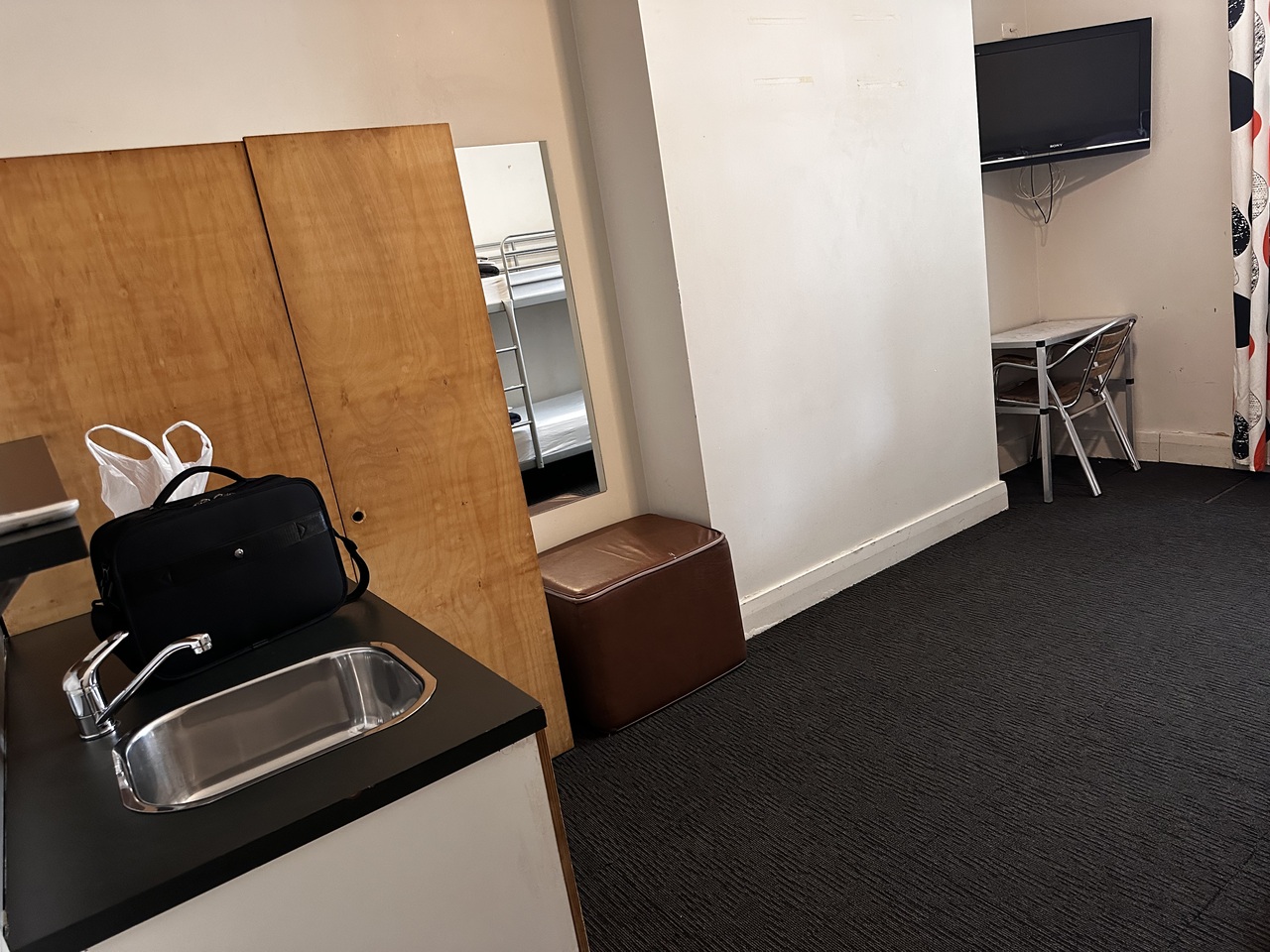 スタンモア駅から徒歩5分ほどで、セントラル駅まで電車で10分ほどのまずまず便利な立地です。キッチン、ダイニングエリア、ラウンジ、バスルーム、ロッカーなど設備が充実しています。駅周辺にはスーパーマーケットや酒屋さんなどがあり、自炊にも便利。
