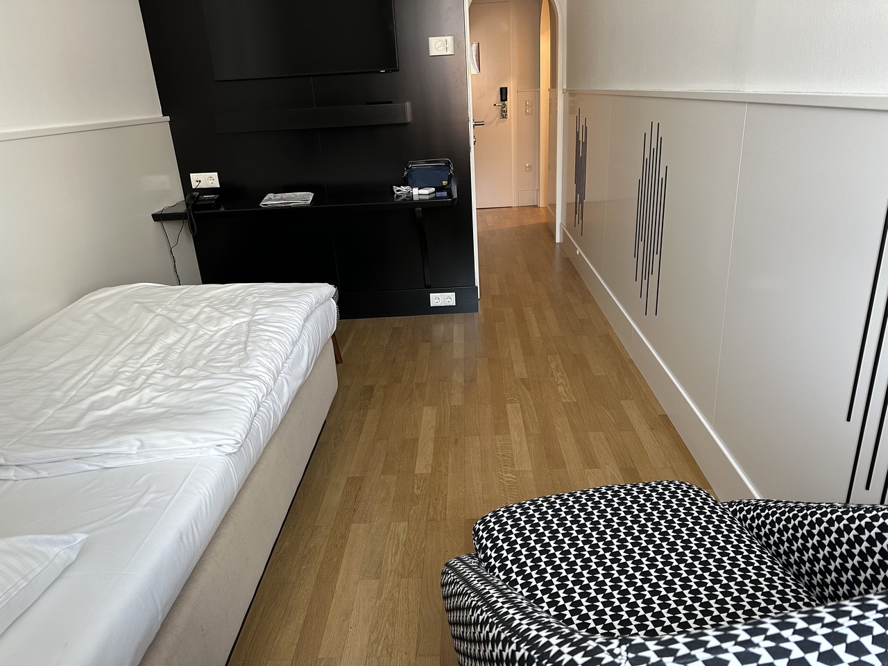部屋の中に専用のクロークがあってひとり旅でも長旅で結構かさばる荷物の出し入れスペースが確保できたので助かりました。ミニバーもありました。ビール一本€3.3(税込)はリーズナブル。シングルのお部屋に10個のアウトレット(電気のコンセント)があって、びっくり。お湯を沸かしたければ、電気ポットを無料で貸していただけます。至れり尽くせり。朝食も種類が多く、美味しかったです。バーやジムもあります。荷物預かりも無料でしていただけます。