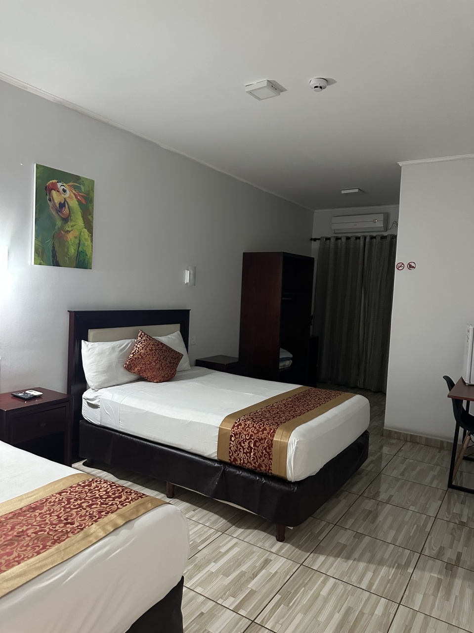 こちらのお宿に4泊しました。市内中心部のバスセンターから徒歩7、8分の便利な立地。パラパス公園のすぐ目の前の安全なエリアでした。周囲にコンビニのはじめ、屋台やレストラン、お土産屋さんがたくさんあります。