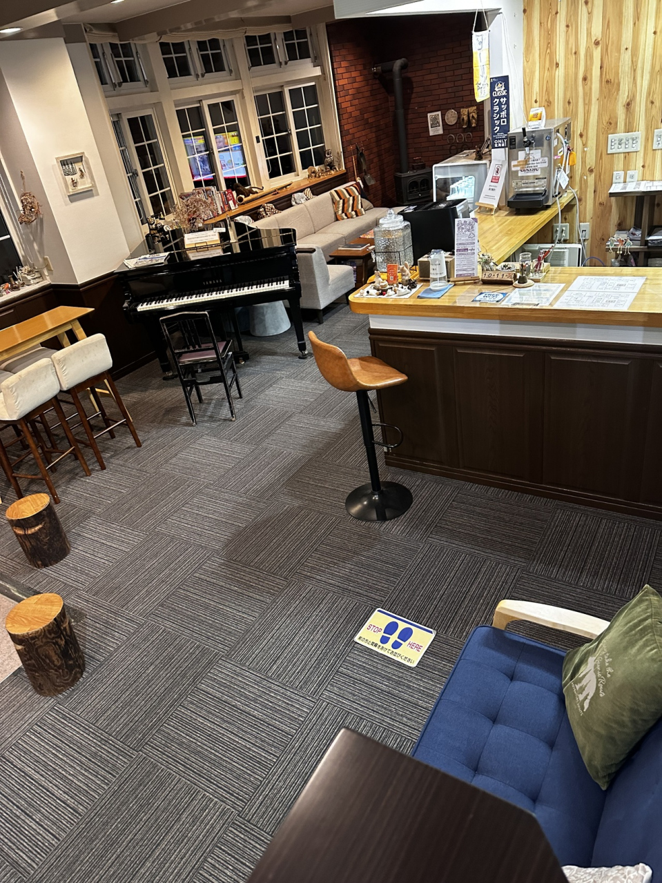 理想的なお宿です。写真家で映像クリエーターの若いご主人と奥さまが経営されているこじんまりとした新しいお宿です。ラウンジにはコーヒーやとっても美味しい美瑛ラスクが置いてありました。
