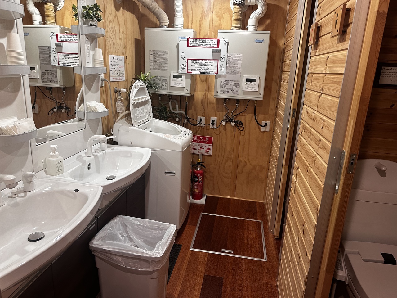 室内に洗濯機や乾燥機も付いています。洗濯洗剤は持参しているので使わなかったけど、ジェルボールが3つ置いてあるのも何気にありがたいです。