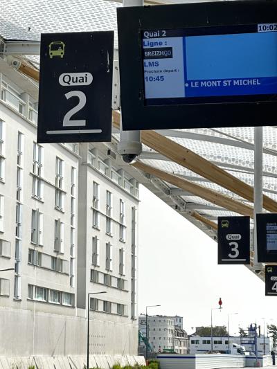 パリのモンパルナス駅から列車(TGV INOUI)でレンヌ駅に到着したらモンサンミッシェル行きバスの切符売り場を探すことになるでしょう。