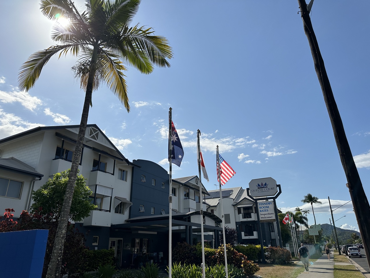 ケアンズ空港からはシャトルバスで到着。自分の不注意でハプニングもありましたが、スタッフの方々がしっかりと対応してくださって、その後もずっと気を遣ってくださいました。