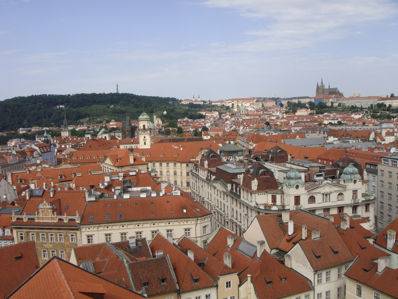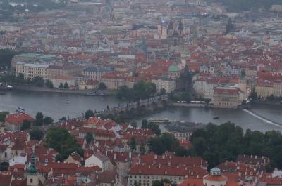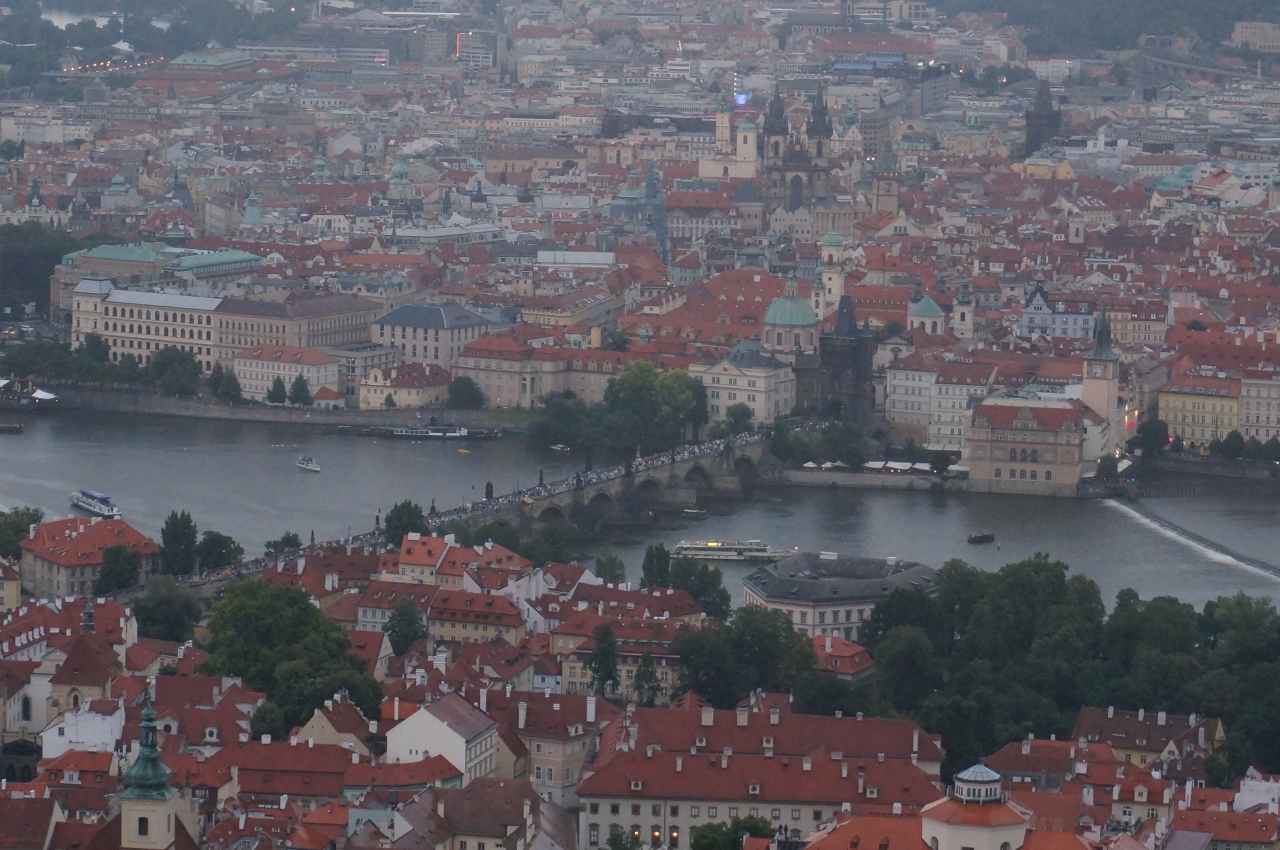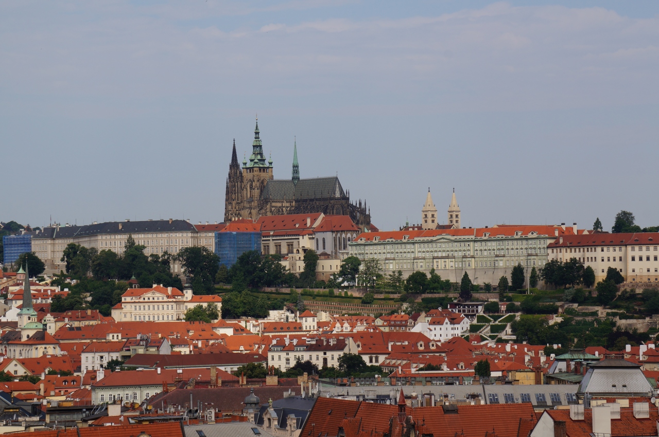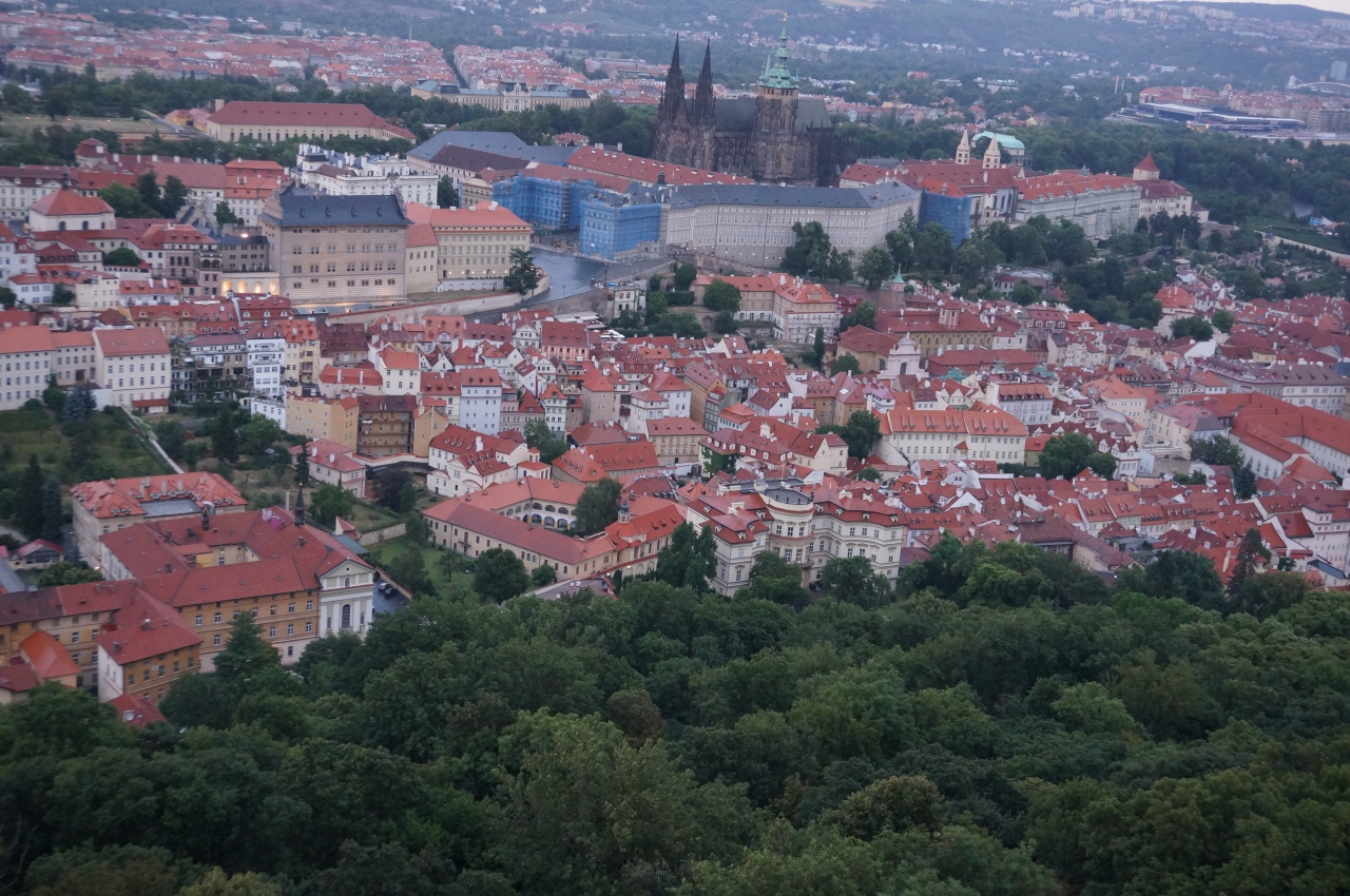 塔からプラハ城や街並みがよく見える。行ったのが7月の21:00だったので夕日がきれい。