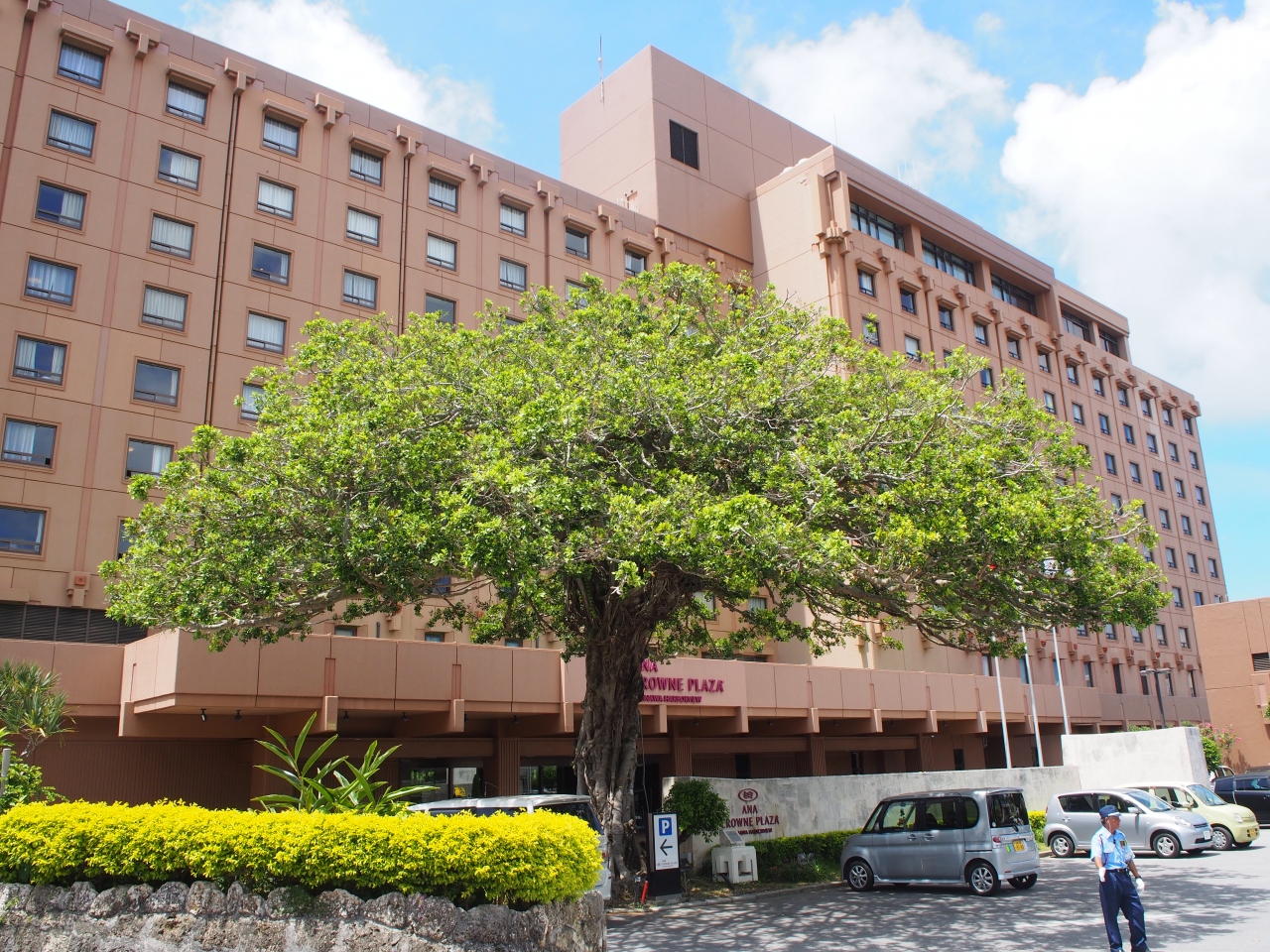 空港からモノレールで10数分、そして駅から歩いて近くにある……と思っていたら、坂道を上ったところにありました。荷物があったのでアクセスは意外にも不便でした。