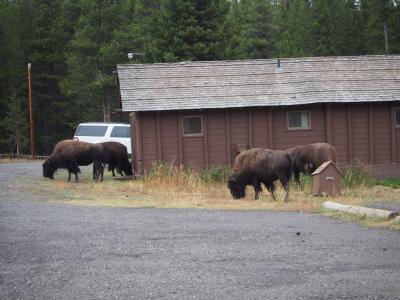 レイクエリアのはずれにあるキャビンに宿泊しました。レイクホテルやジェネラルストアからは遠く徒歩での移動は厳しいエリア。部屋はとても狭くバスタブなし(シャワーのみ)、レセプションの対応も非常に悪いと言う散々なところでしたが、夕方にバッファローの群れがキャビンエリアを闊歩している姿には感動しました。