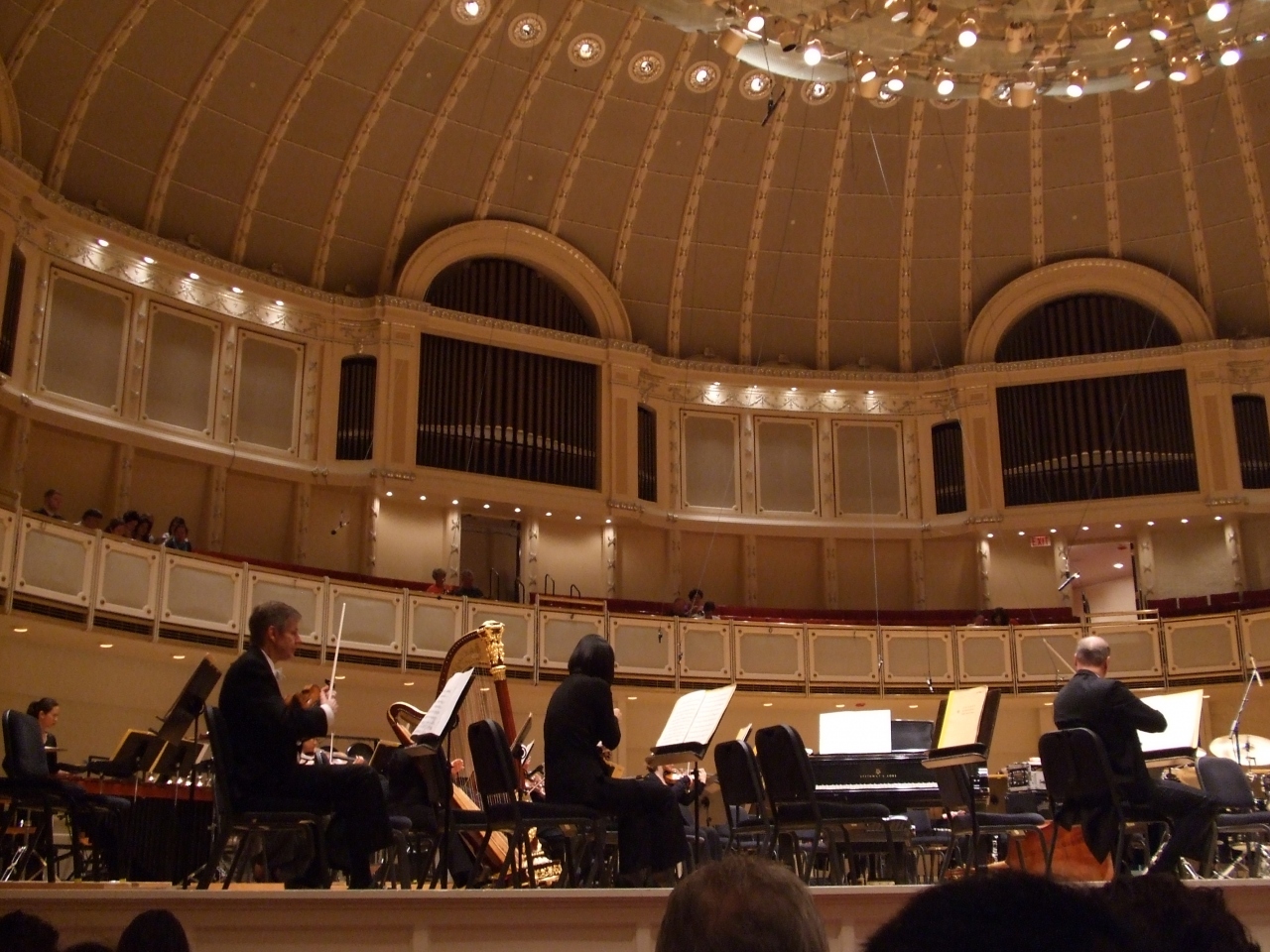 螺旋階段の踊り場で演奏されるため,店内のどこに座っても演奏が楽しめる。