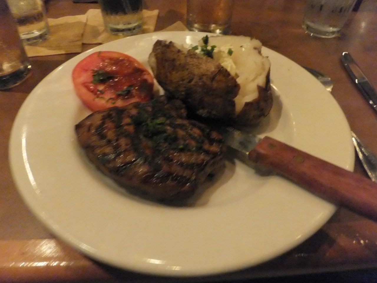 メニューはハンバーガーやサンドイッチが10ドル~、ステーキは20ドル~と比較的お手頃な価格。厚みのある肉に旨味がぎっしり詰まっており、アメリカのステーキの美味しさを実感した。- 旅行時期