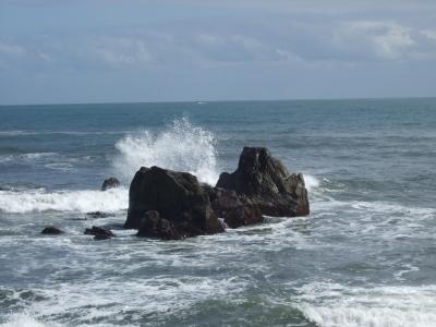 東映のオープニングさながらの,岩に打ち寄せる波。