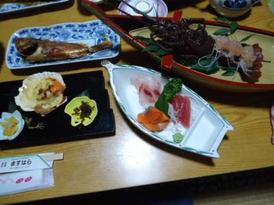南伊豆のこの時期はイセエビでフェアをやっているので、ここに今回は宿泊です。トイレ付きの民宿の部屋で助かりました。