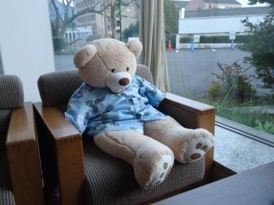 ツアーでの宿泊なのでいくらなのか料金は分かりませんが、ロビーにはくまのぬいぐるみが鎮座していて、温泉もいろいろあっていいところです。
