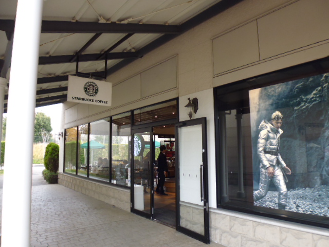 神戸三田プレミアムアウトレットには多くの店舗があって寒い中を歩くことになるのだけれども、アウトレット内の端に位置しているのがここのスターバックスです。
