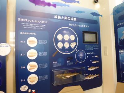 神戸の山のほうにある明太子の会社の明太子の販売と解説をしているところです。バスで行ったのだけれども、入口にはまずタラの解説などがあってそのあとは工場を少し見て、そこから買い物です。