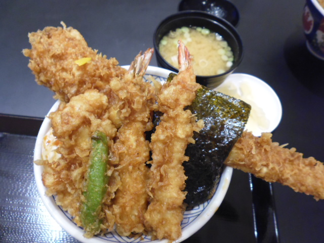 大阪の吹田エキスポシティ内にある江戸の味のてんぷらです。大阪のてんぷらはあっさりの油使いだけれども、東京の味は濃いたれにごま油のいい香りです。