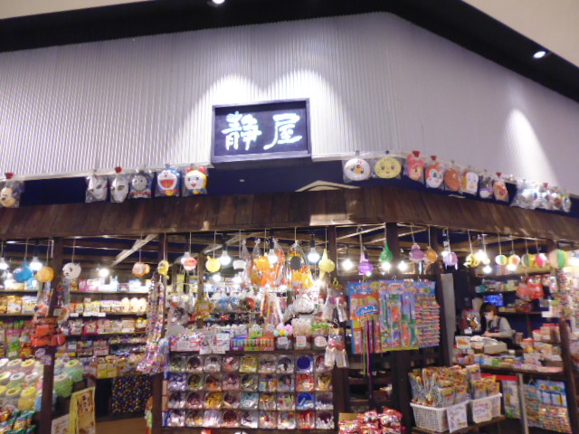 エキスポシティ3階にあるフードパビリオンの入り口あたりにあるのがここ静屋です。昔のなつかしいお菓子や食べ物、それに駄菓子屋にいろいろあった商品がたくさんあって目を楽しませてくれます。