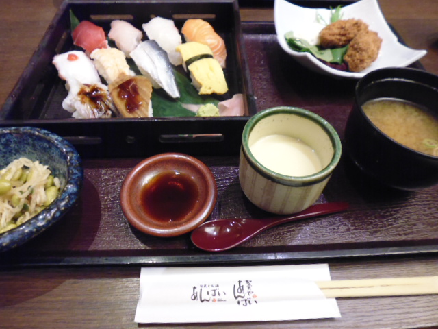寿司とカキフライのランチですが、普通でした。牡蠣フライも冷凍のようで、あまりうまくはなかったなぁ・・- 旅行時期