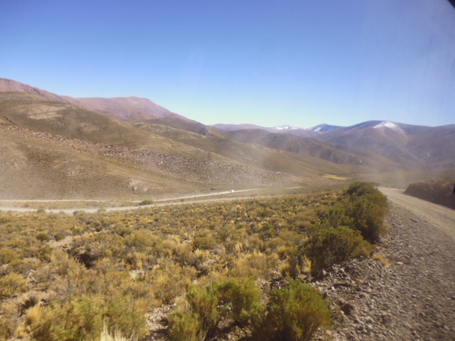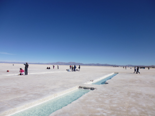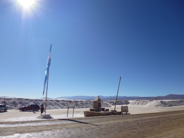 ボリビアの塩湖は有名だけれども、アルゼンチン北部のチリへの国境へ向かう道に塩湖があります。行く途中には4170mという場所も通過します。