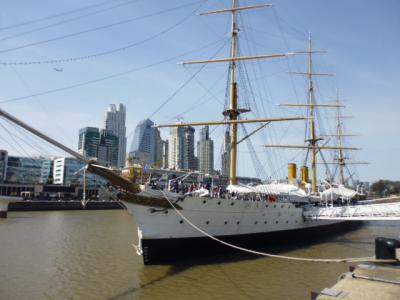 ブエノスアイレスの港沿いの倉庫街には多くのレストランやカフェがありますが、2隻の船が停泊していて博物館になっています。