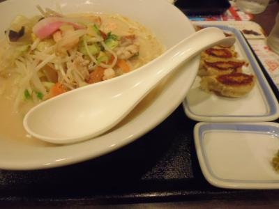 道具屋筋近くにあるリンガーハットでちゃんぽん麺です。ランチ時にはちゃんぽんと餃子のセットがあってお腹いっぱいです。