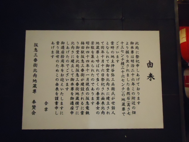 大阪梅田の紀伊国屋さんから少し暗がりに向かうとあるのがこの地蔵尊です。地元では歴史のあるところで、近所の方や近所のお店の方たちが来ています。