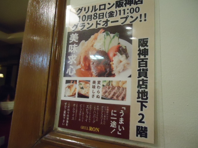 大阪に行ったら必ずに行く昔ながらの洋食屋さんで相変わらずのうまさです。店内には阪神の地下街にも店をだしたとのことの案内ですが、阪神でも欲しい名店というところでしょう。