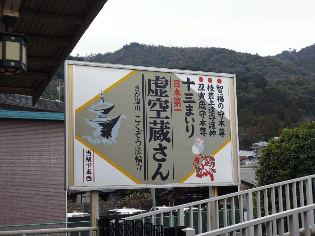 阪急の嵐山駅には大きな看板もあって、人を呼んでいます。嵐山観光のメインである渡月橋方向からは反対の山側になるので行く人は少ないエリアです。