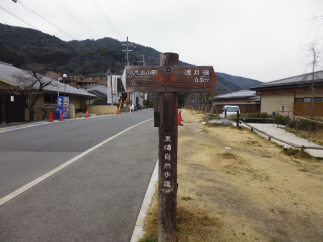 京都の観光地嵐山に行ったら東海自然歩道の看板があって写真です。こんなところにと思って後から検索すると、京都から宇治方面に延びて、いろいろなところにあるのだな・・・知らなかった。