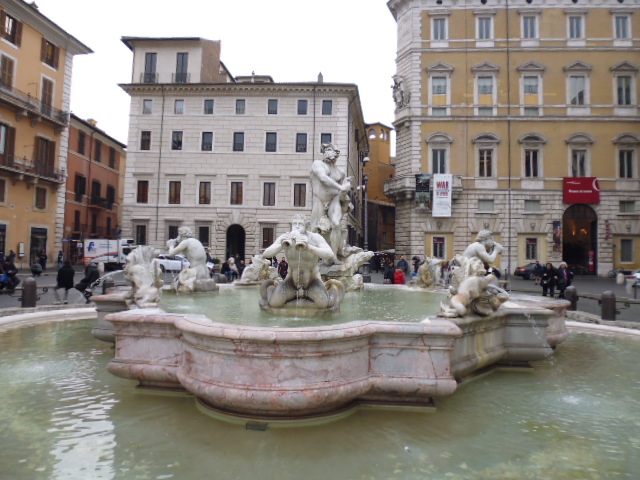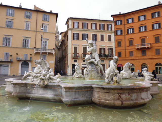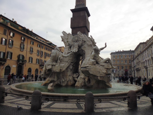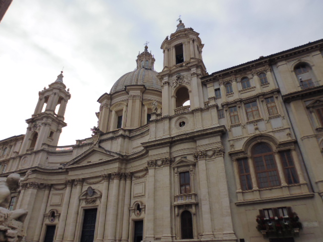 ナヴォ―ナ広場には3つの噴水があって多くの人でにぎわっています。その広場の真ん中にある四大河の噴水のわきにあるのがこのサンタニェーゼ・イン・アゴーネ教会です。