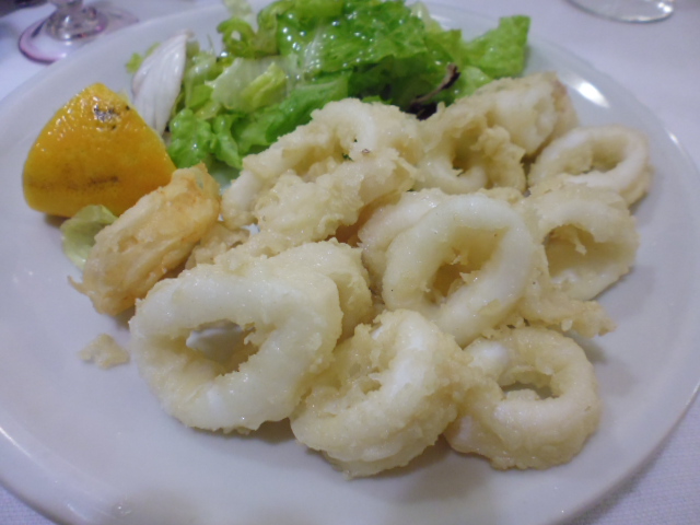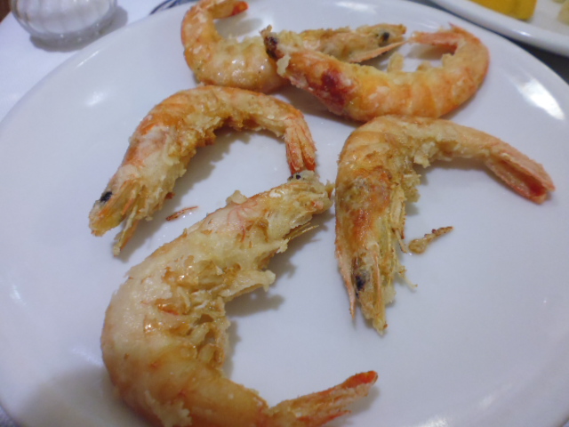 魚系のセットのミックスフリットを頼んだら、イカだけのフリットだったので、文句を言うと後からエビを5匹ほど揚げてもってきてくれました。もちろん料金もそのままなので、いい感じでした。