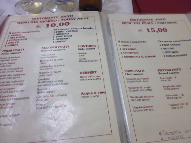 テルミニ駅から近くてセットメニューがあるので便利です。肉系のセットが€10で魚系が€15です。