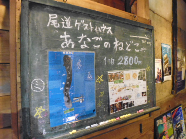 JR尾道駅から商店街を進むと左側にあるのがここむらちゃんです。黄色の看板が目立ちます。卵かけごはんが有名ということで、卵かけごはんをいただきます。