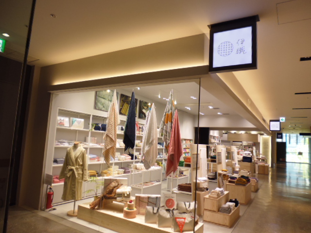 大阪駅からすぐのグランフロント内の少し奥にあるのがここ伊織です。四国の今治は昔からタオルで有名なのだけれども、そのタオルを現代風にアレンジしての販売です。