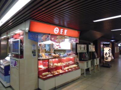 南海電車のなんばパークスに近い出口からすぐの551蓬莱がここです。大阪では豚まん、東京では肉まんというのがここで買えます。