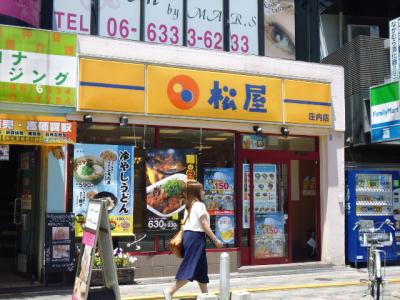 どこにでもある松屋の店が阪急電車の庄内駅そばにもあります。定番の牛丼もあるし、価格のてごろなものが目白押しです。